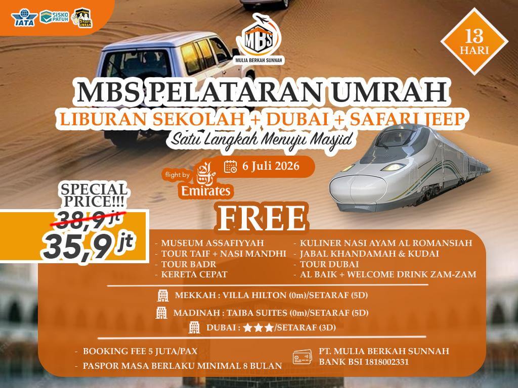 - Jamaah terikat pada peraturan MBS dan wajib mematuhi instruksi dan aturan dari tour leader dan muthawwif selama safar.